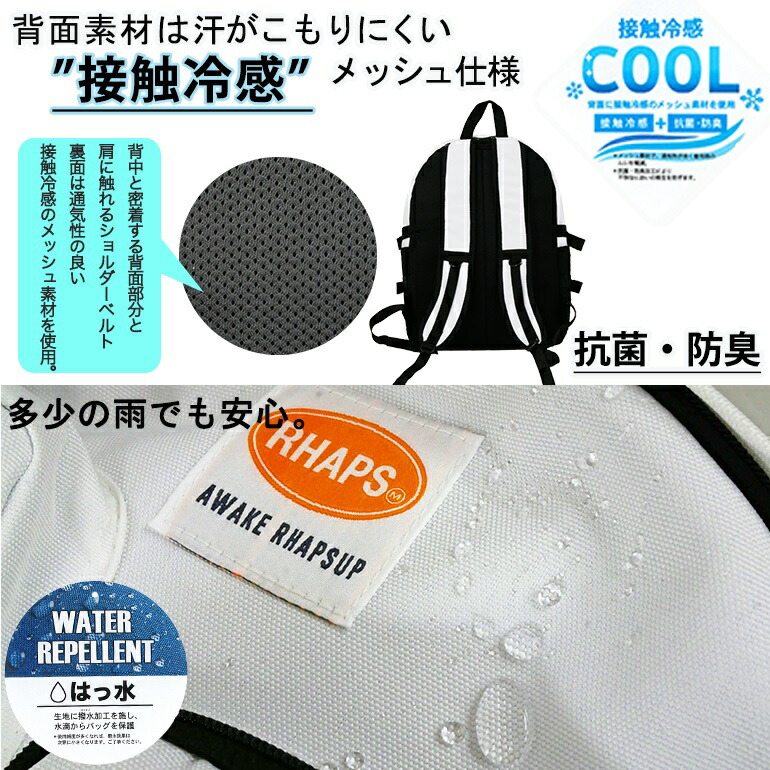 再再販 バッグ リュック デイパック バックパック 通学 女子 中学生 オーバルポケット 2層式 30l 約15あおりポケット はっ水 接触冷感 修学旅行 旅行 おでかけ 買い物 林間学校 部活 中学校 高校生 小学生 人気 大容量 入学準備 黒 ブラック 紫 白 韓国 ラプサップ